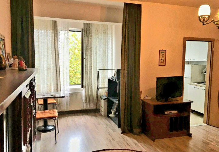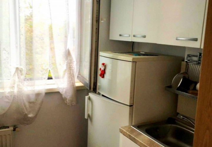 Garsoniera este bine întreținută și are o compartimentare practică: cameră luminoasă, bucătărie închisă, baie dotată cu cadă și bideu, plus logie/balcon de 2,76 mp.