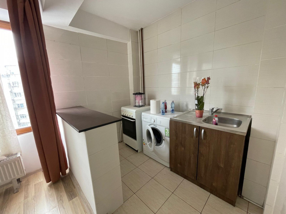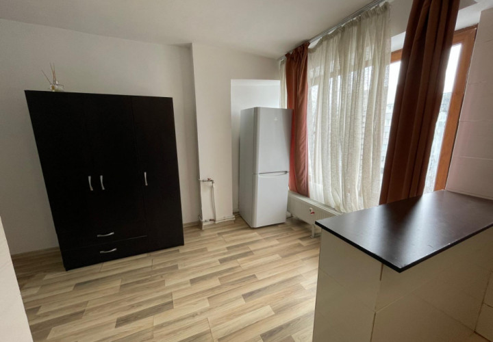 Amplasata la etajul 8 din 10, ofera lumina naturala buna si un plus de intimitate. Spatiul este configurat tip open space,rezultând un spatiu practic si usor de amenajat, dispune de boiler,masina spalat rufe ,frigider,aragaz si tv .