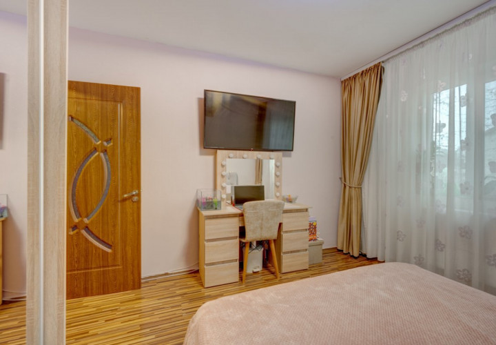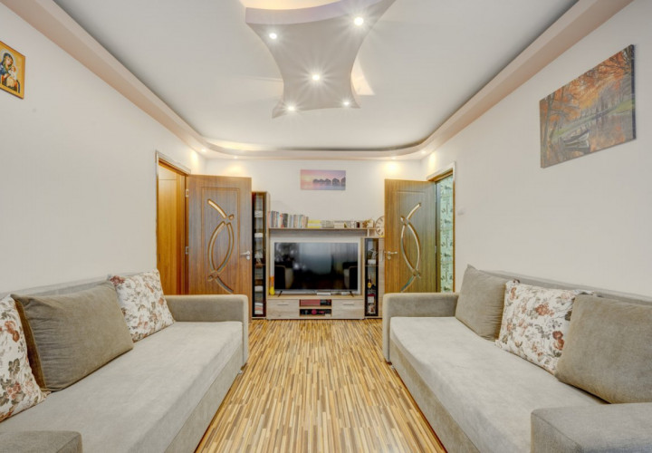 Apartamentul este situat intr-un imobil construit in anul 1971, este la etajul 4/4, are compartimentare semidecomandata cu o suprafata de 50,67 mp distribuita astfel: un hol la intrare, bucataria(9,5mp), living generos (20,5mp- livingul a fost extins spre balcon), un dormitor(12.43mp), 1 grup sanitar (3,64mp) si un hol langa baie in care s-a amenajat un dressing.