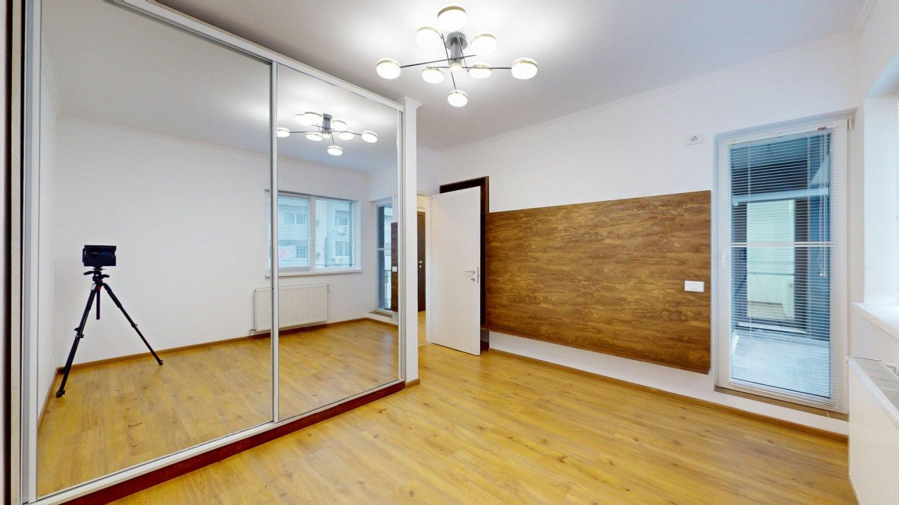 Apartamentul impresionează prin compartimentarea eficientă și finisajele superioare, moderne, alese cu grijă pentru durabilitate și estetică. Ușile interioare Pinum completează armonios un ambient elegant și contemporan. Locuința nu a fost locuită niciodată și se vinde parțial mobilată, cu mobilier realizat pe comandă din PAL premium, gama Contempo.