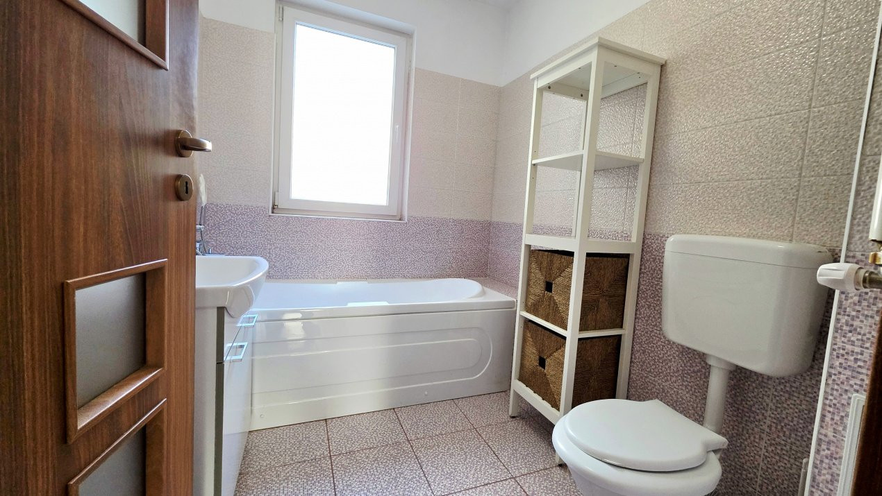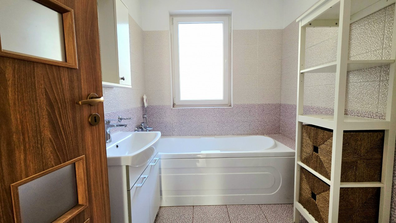 Baia cu fereastra mare adauga un detaliu rar si extrem de apreciat: lumina naturala, ventilatie eficienta si un plus de confort care face diferenta in viata de zi cu zi. Apoi, spatiile de depozitare si dressing "inserate" in holul "L", elimina grija "ascunzatorilor" de haine sau alte obiecte necesare casei.