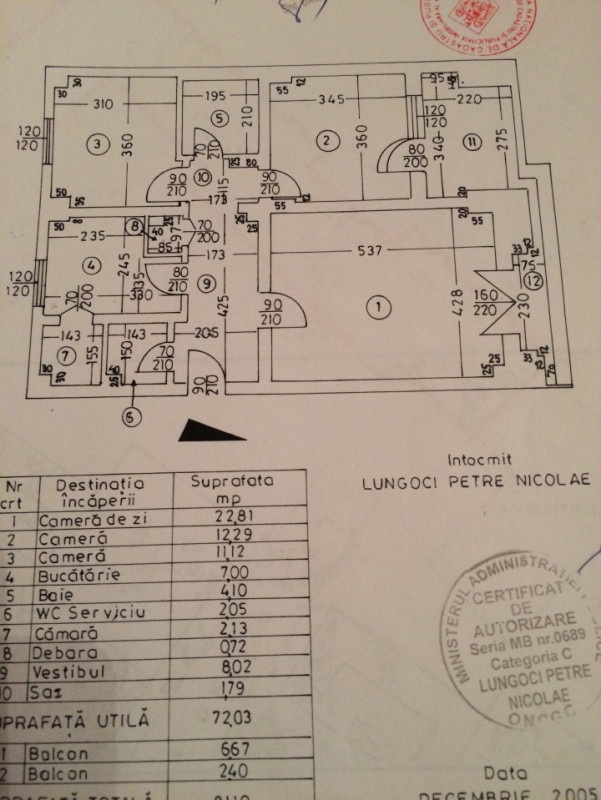 Apartamentul are 72 mp utili la care se aduga cele doua balcoane de 6,67 mp pe dorimitorul mare si 2,40 mp pe living , doua dormitoare, grupuri sanitare (o baie mare + WC de serviciu) si o bucatarie open space mobilata si utilata.