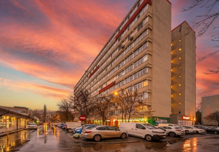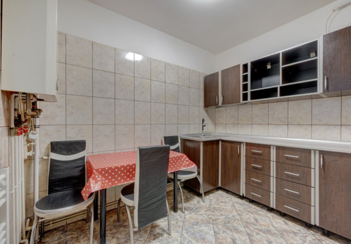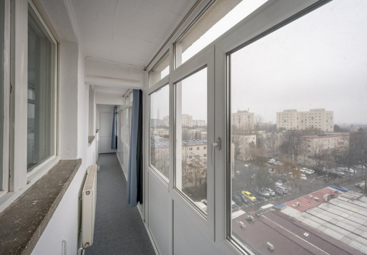 Apartament decomandat, 63 mp utili + balcon 10 mp, etaj 7/10, vedere liberă, bloc bine întreținut, construcție 1974, fără risc, cu spații comerciale la parter.