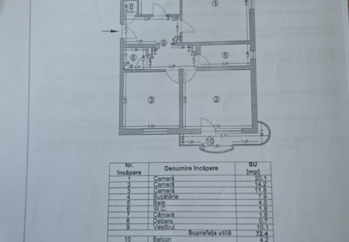 Apartamentul are o suprafață utilă de 73 mp, la care se adaugă un balcon de 4 mp, rezultând o suprafață utilă totală de 77 mp. Compartimentarea este decomandată, oferind confort și funcționalitate optimă pentru o familie.