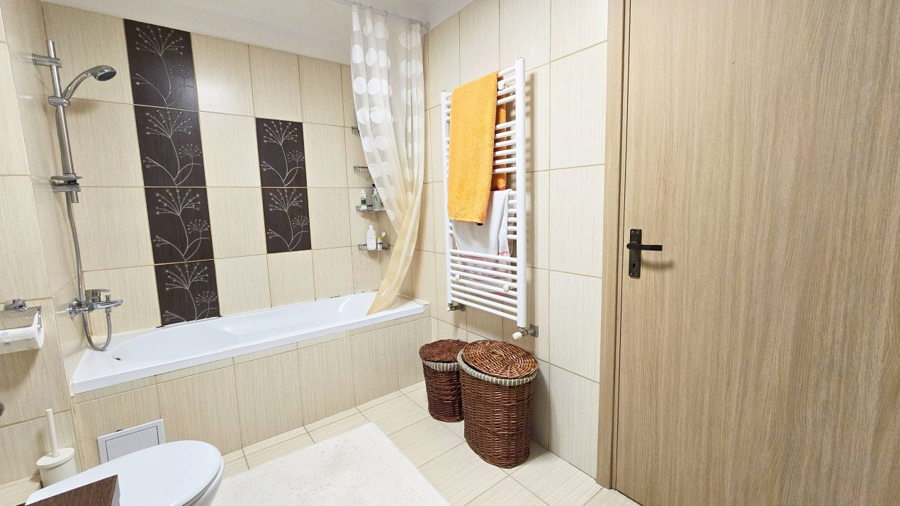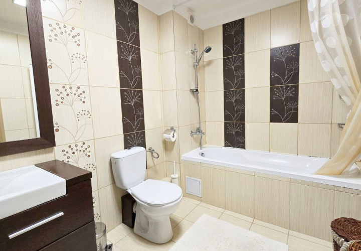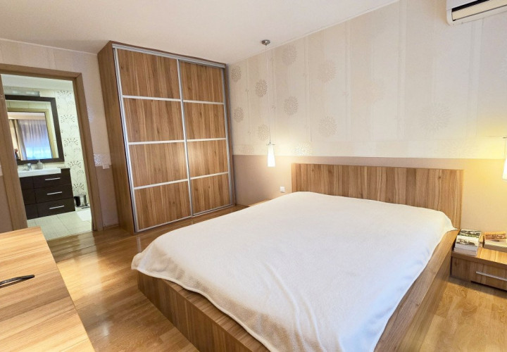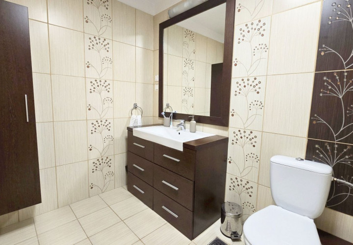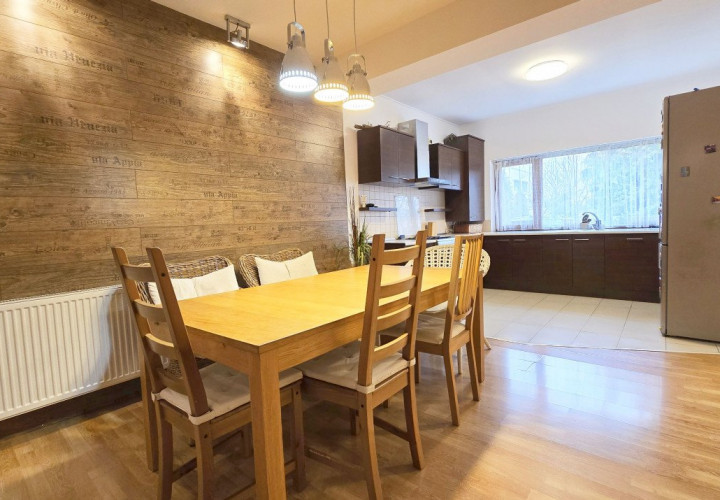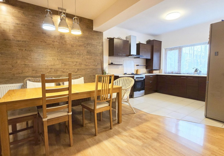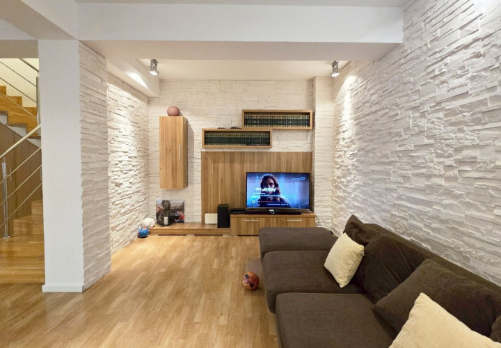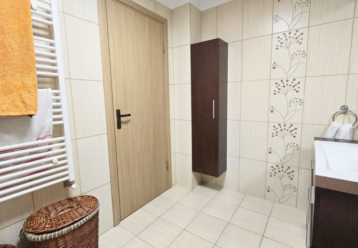 Altfel, casa, pe cat de generoasa si confortabila, este pe atat de intima, atat cat isi doreste orice familie doritoare de liniste si confort sporit. Caci, in completarea livingului imens cu bucatarie deschisa si echipata complet, a dinning-ului si grupului sanitar de la parter, se regasesc la etaj doua dormitoare individuale, o baie si un dormitor matrimonial cu baie proprie, toate in aceeasi nota reconfortanta.