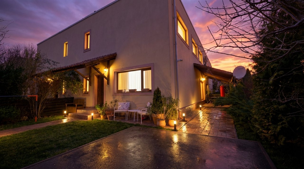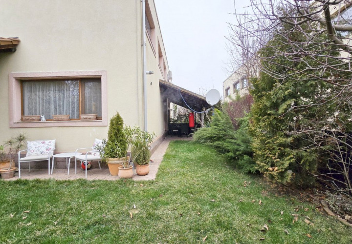 In plus, curtea este o adevarata oaza de relaxare, atat prin existenta terasei acoperite laterale cu acces in si din living, a gratarului amplasat in partea dinspre strada curata si linistita. Si totul se completeaza cu atmosfera tihnita a cartierului locuit de oameni de calitate. Si totul la doar 30 de minute de Piata Unirii.