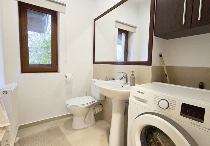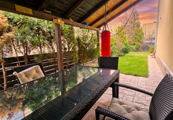 In plus, curtea este o adevarata oaza de relaxare, atat prin existenta terasei acoperite laterale cu acces in si din living, a gratarului amplasat in partea dinspre strada curata si linistita. Si totul se completeaza cu atmosfera tihnita a cartierului locuit de oameni de calitate. Si totul la doar 30 de minute de Piata Unirii.