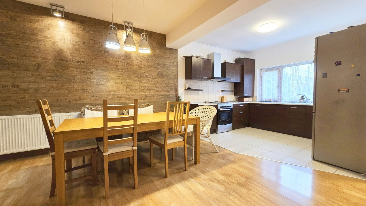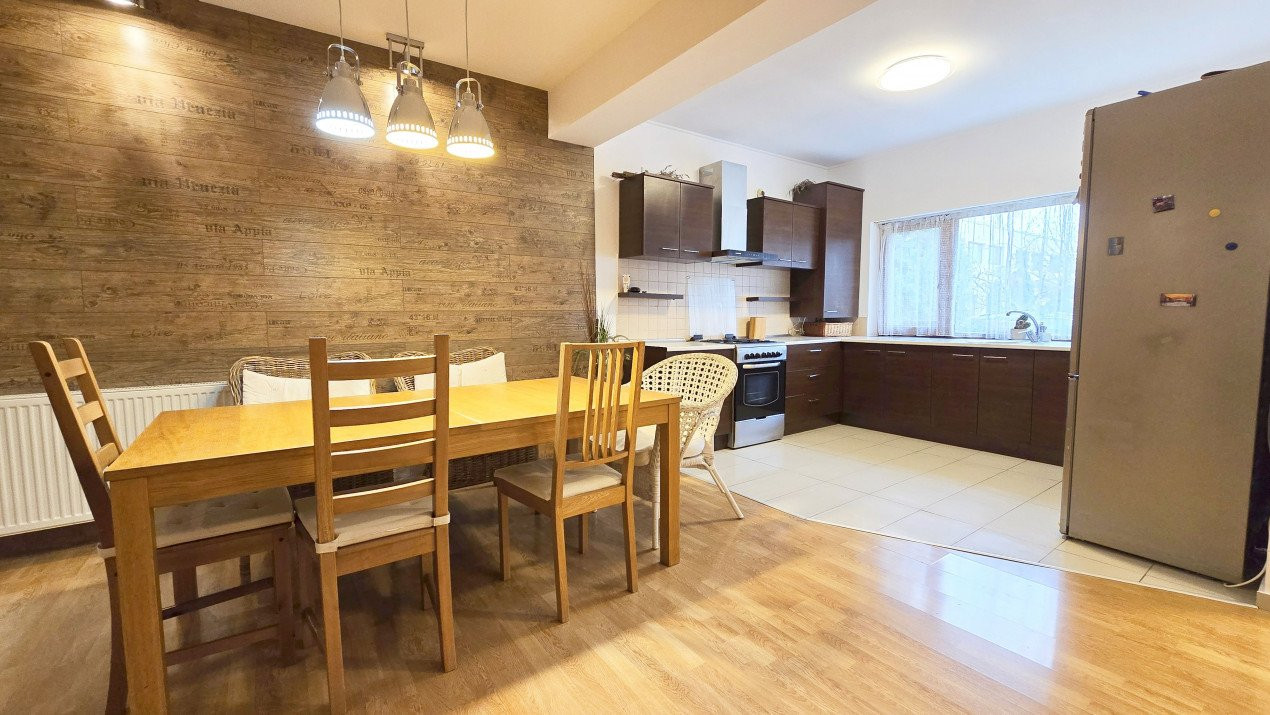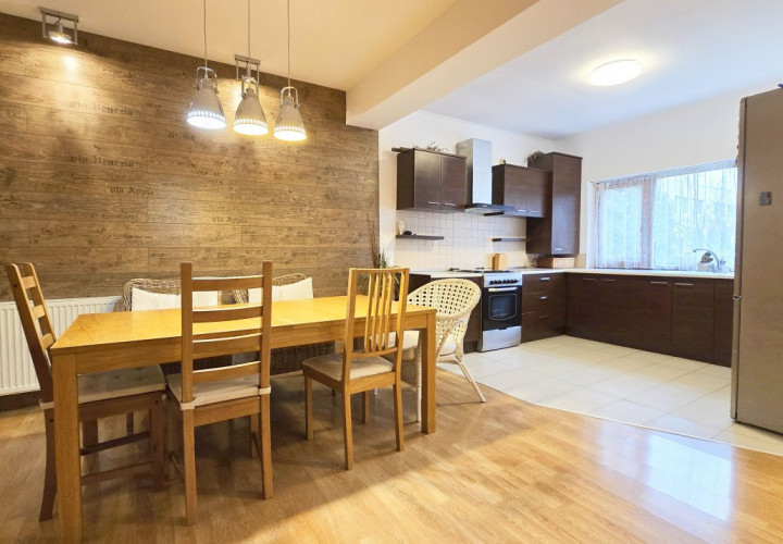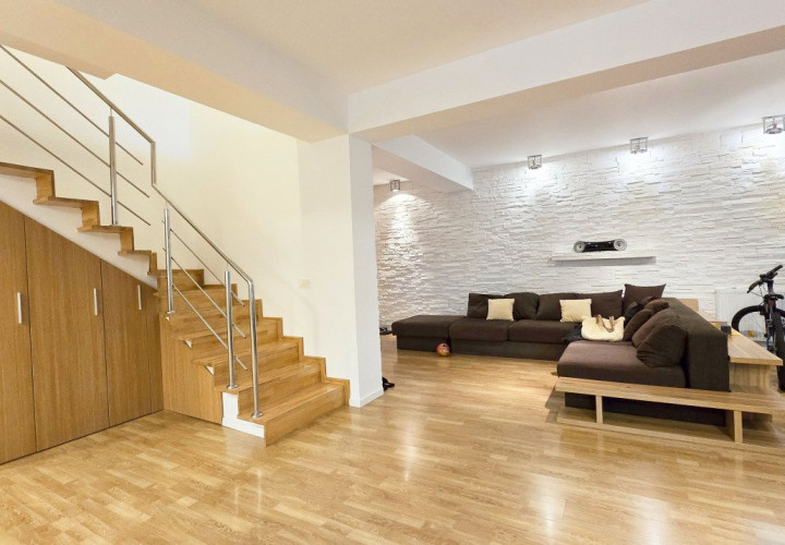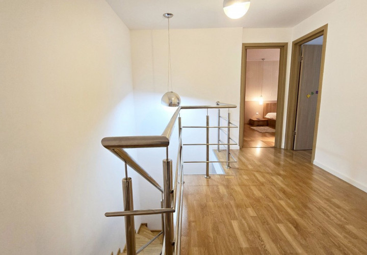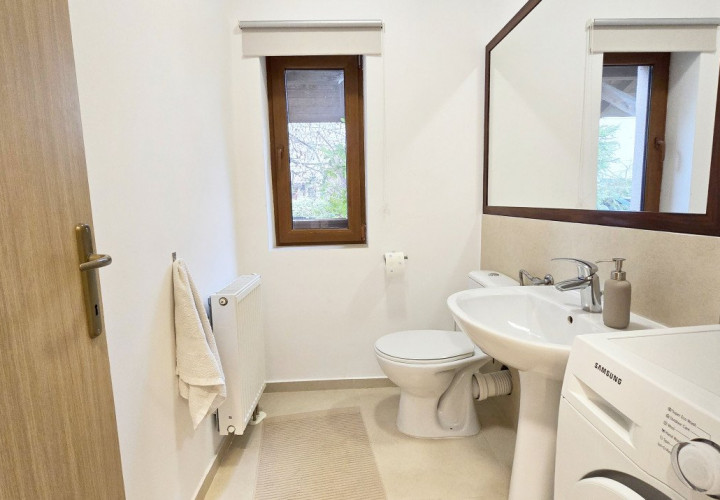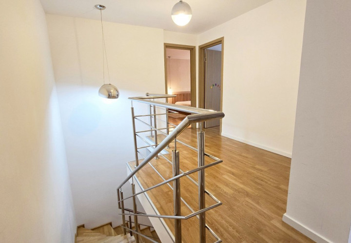 Altfel, casa, pe cat de generoasa si confortabila, este pe atat de intima, atat cat isi doreste orice familie doritoare de liniste si confort sporit. Caci, in completarea livingului imens cu bucatarie deschisa si echipata complet, a dinning-ului si grupului sanitar de la parter, se regasesc la etaj doua dormitoare individuale, o baie si un dormitor matrimonial cu baie proprie, toate in aceeasi nota reconfortanta.