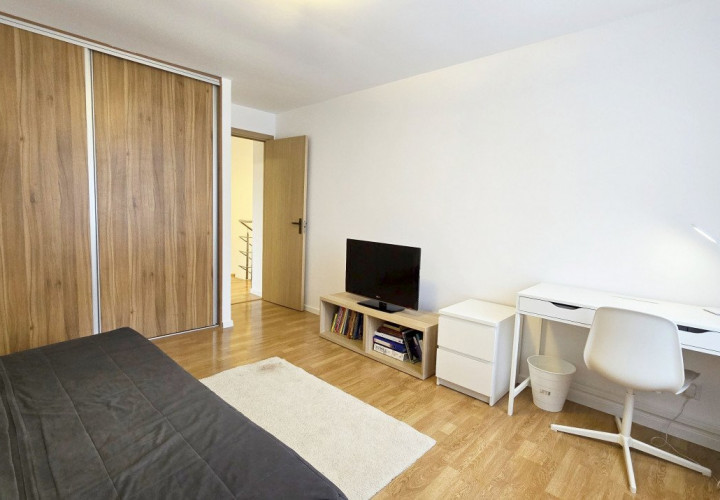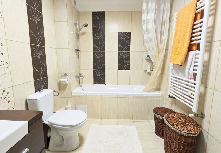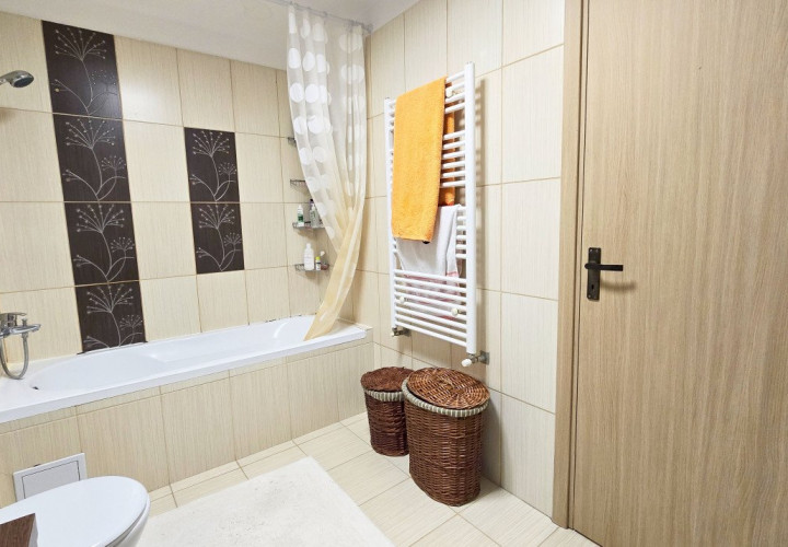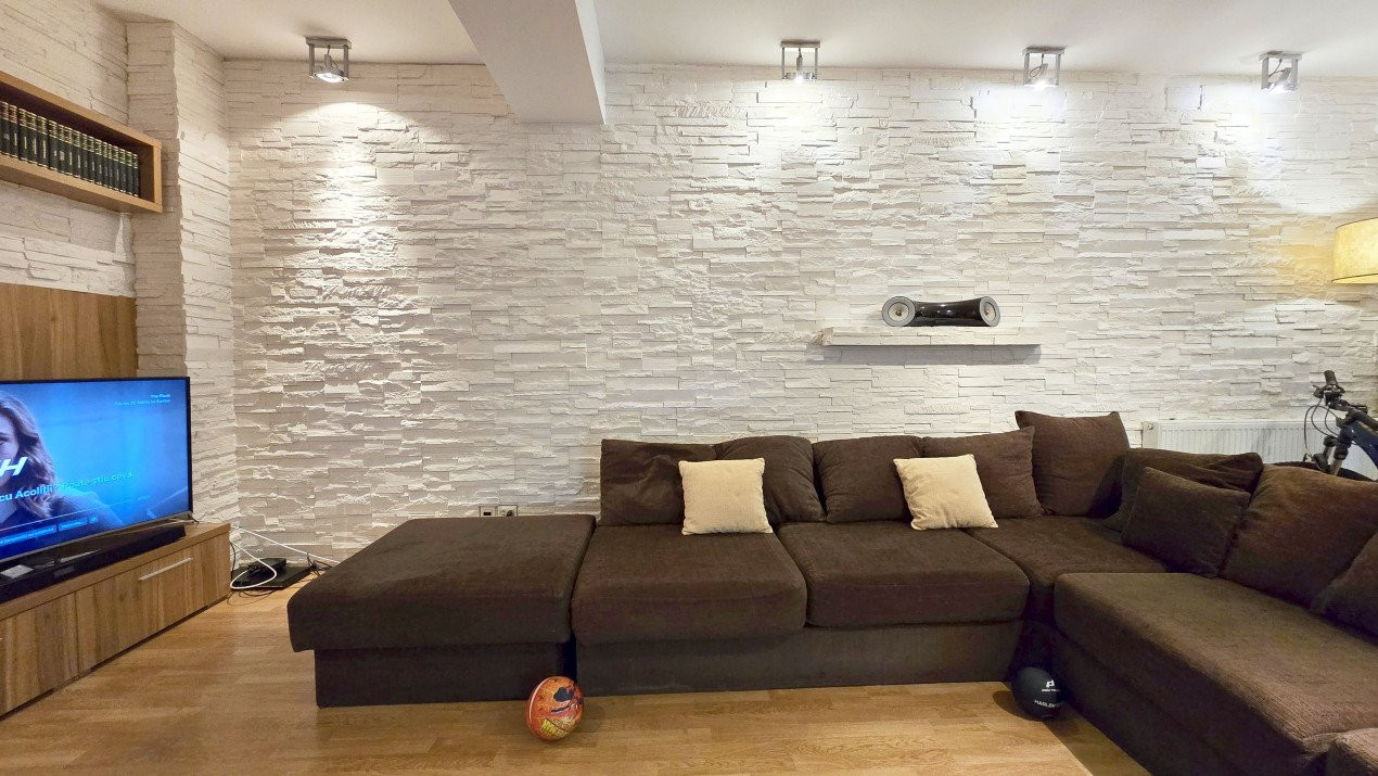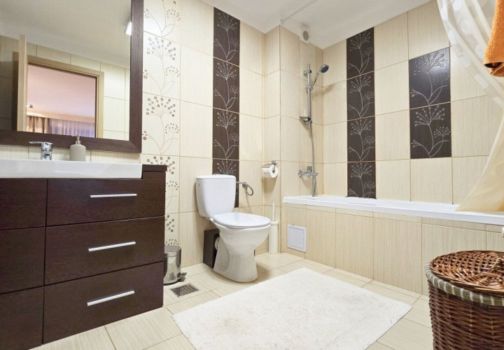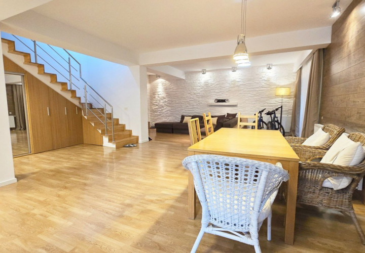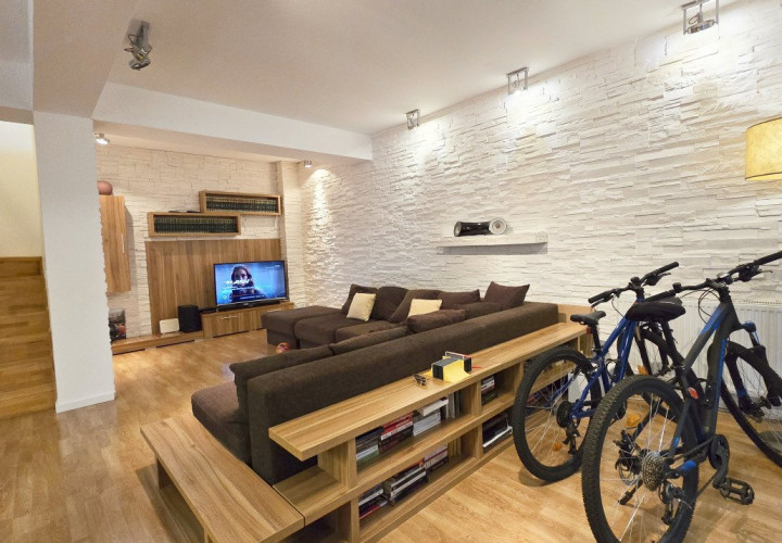 Altfel, casa, pe cat de generoasa si confortabila, este pe atat de intima, atat cat isi doreste orice familie doritoare de liniste si confort sporit. Caci, in completarea livingului imens cu bucatarie deschisa si echipata complet, a dinning-ului si grupului sanitar de la parter, se regasesc la etaj doua dormitoare individuale, o baie si un dormitor matrimonial cu baie proprie, toate in aceeasi nota reconfortanta.