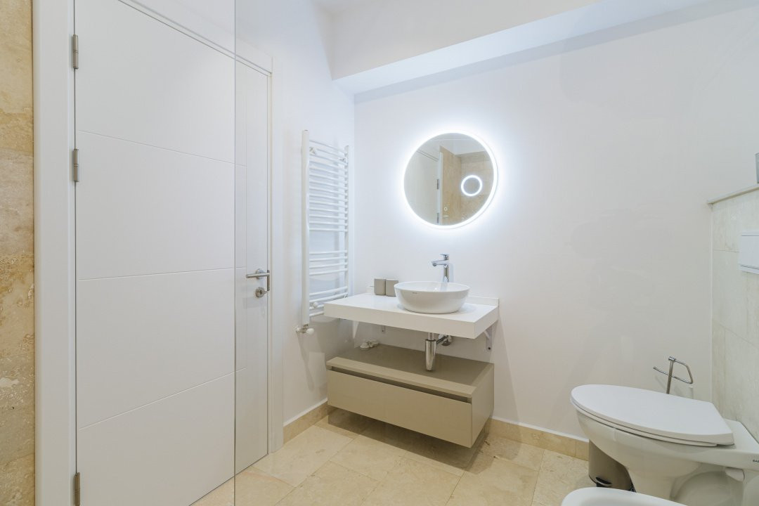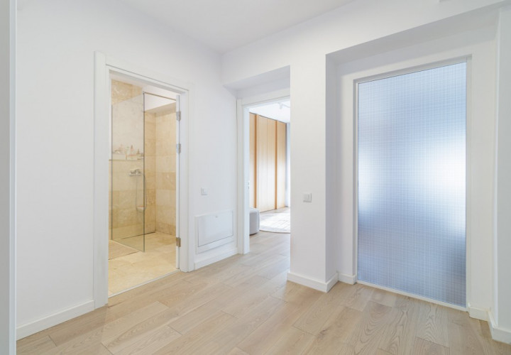 Pardoseli din marmură și parchet, uși celulare, vopsea lavabilă, ușă de intrare metalică multipunct.
