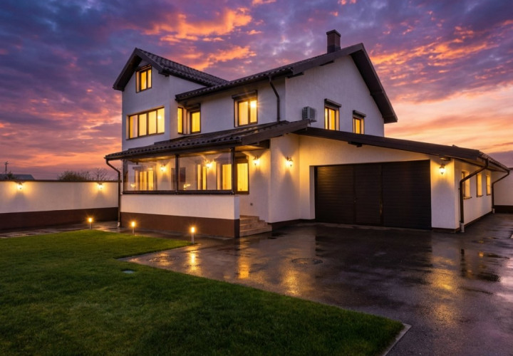 * Garaj închis pentru 1–2 mașini + spații suplimentare de depozitare