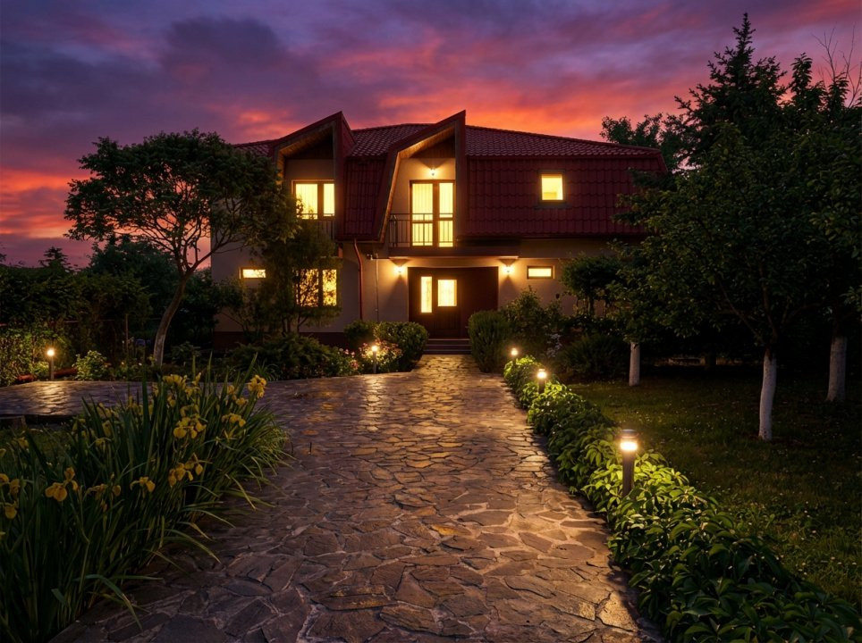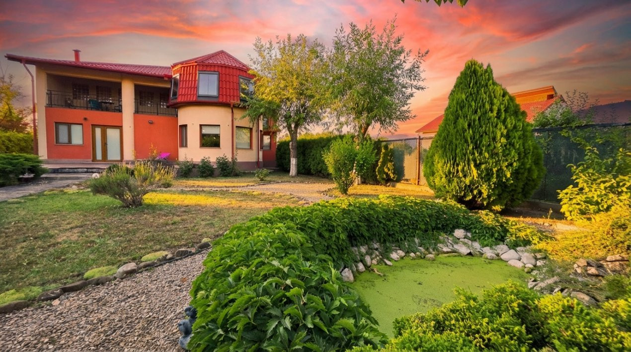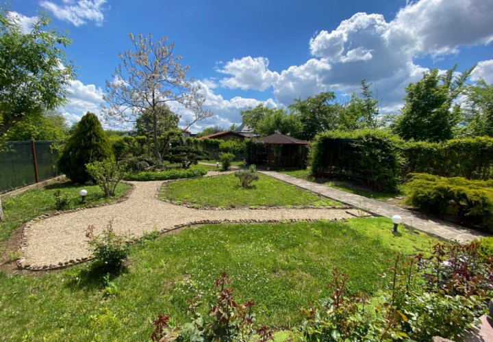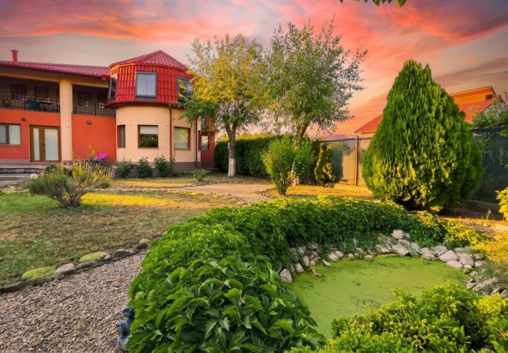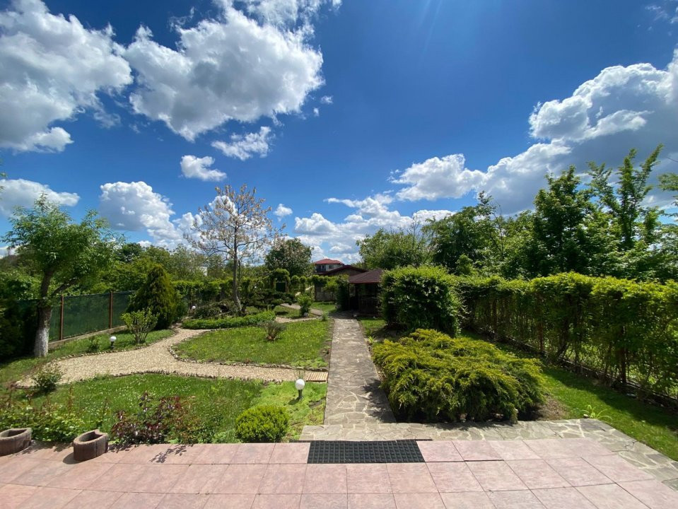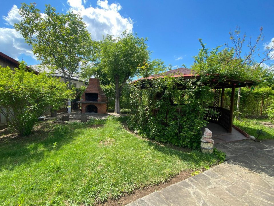In spatele curtii si a casei, regasim o zona ce te imbie doar la relaxare, amenajata cu arbusti ornamentali, un mic iaz, un foisor cu gratar, toate armonizate pentru a-ti oferi sentimentul de vacanta in propria ta casa.