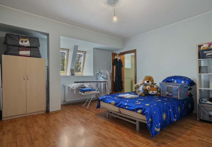 Alaturi de subsolul casei in care este amplasata si centrala termica ce deserveste intreaga constructie, compartimentat in camere generoase cu functionalitati multiple, printre care si un buncar facut ca la carte cu pereti din beton armat cu grosimea de 40cm, exista un pod mare destinat depozitarii, cu acces pe o scara mobila ce permite accesul.