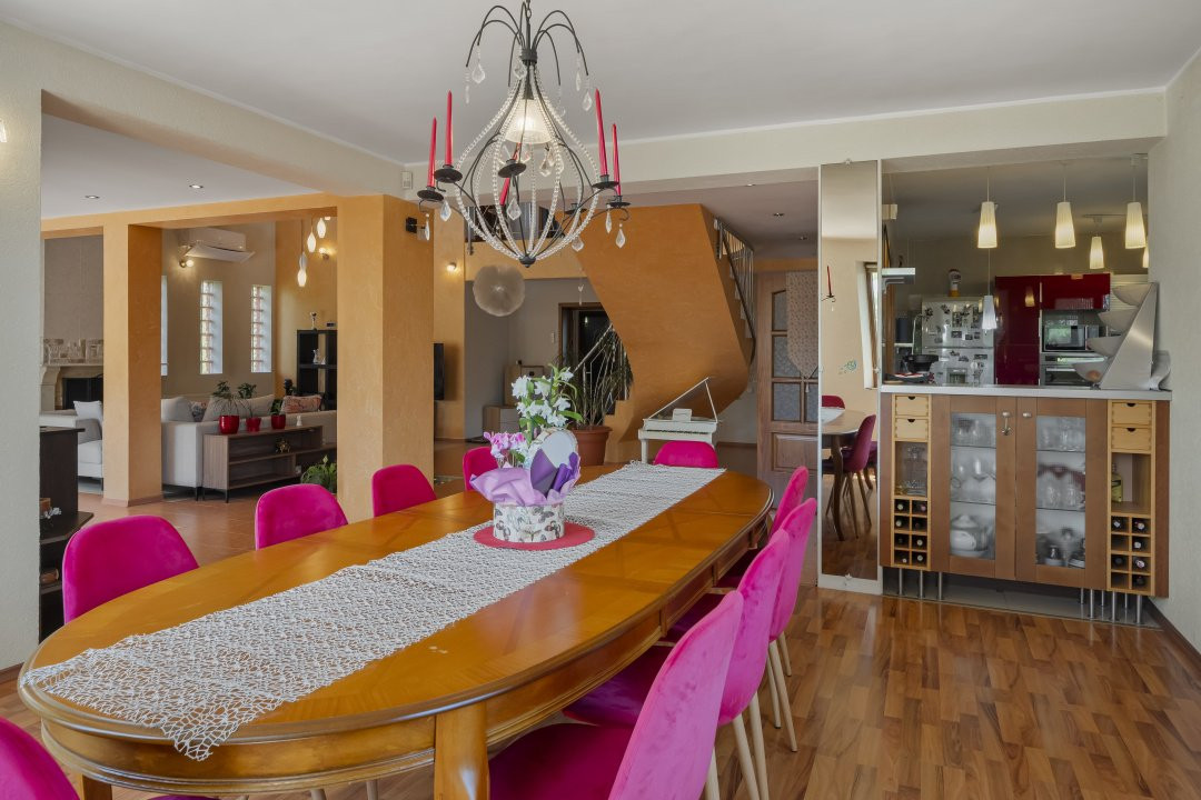 Locuinta cu dublu acces (din fata si prin terasa din spate), este pe cat de generoasa, pe atat de intima si cocheta, in ciuda amenajarilor realizate in urma cu 15 ani, dar conservate impecabil de o familie care se sprijina pe principii sanatoase si care a considerat intotdeauna ca propriul confort se intretine prin mentinerea unui minim de disciplina in spatiul in care iti doresti o viata de calitate langa oamenii dragi.